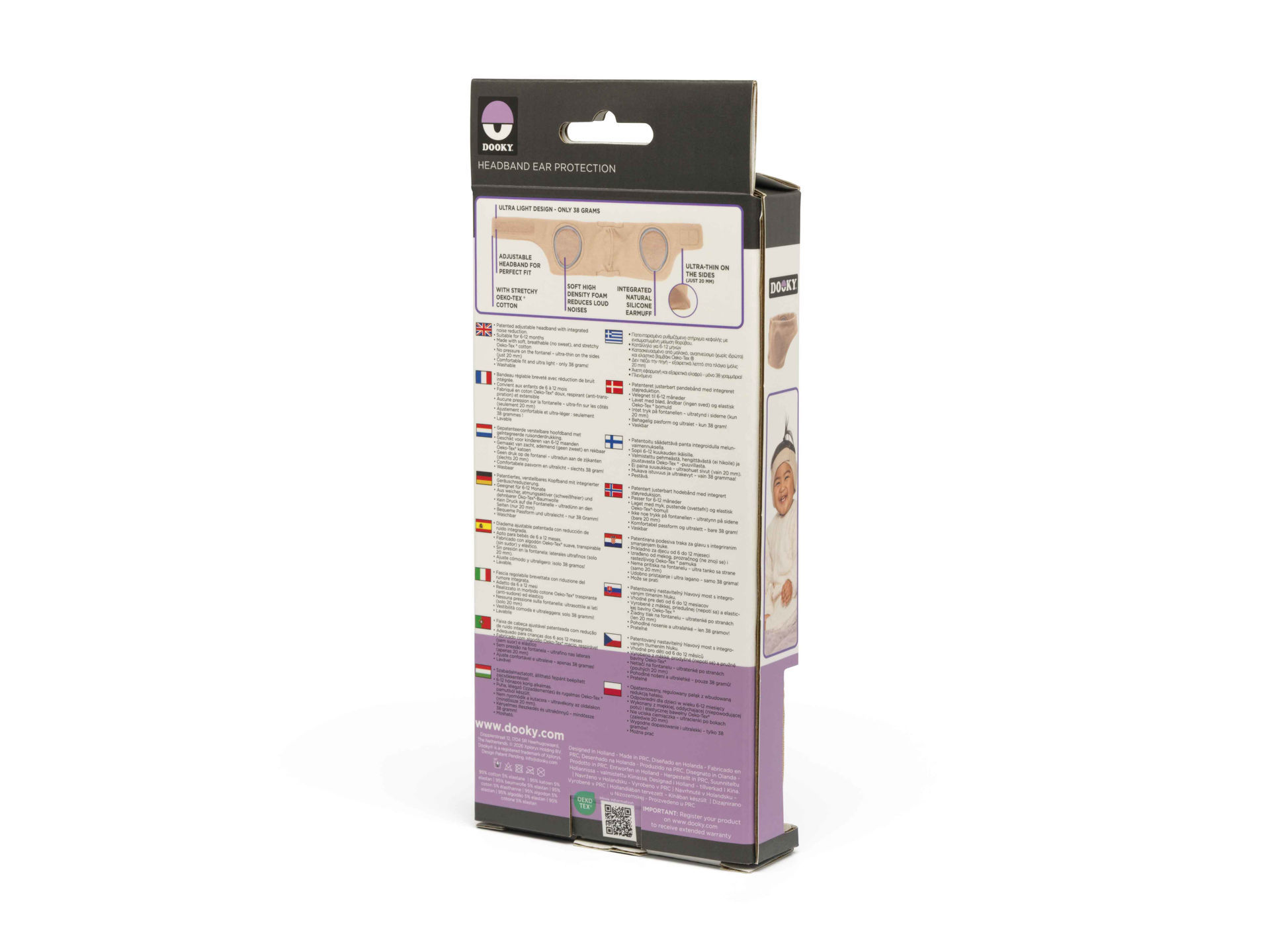 Gentle protection for little ears Everyday sounds are everywhere, but for babies, they can quickly become overwhelming. The Dooky Headband Baby Ear Protection offers a soft, safe, and comfortable way to give your little one peace and quiet wherever you go. Lightweight, adjustable, and ultra-soft — specially designed for the tiniest ears. Dooky’s patented design features soft integrated silicone earcups with high-density foam, gently reducing everyday noises without any hard plastic parts. Perfect for family outings, parties, or quiet time at home when your baby needs a bit less stimulation. Made with Oeko-Tex® certified cotton, the headband is breathable, stretchy, and sweat-free. The ultra-thin sides (only 20 mm) allow your baby to move their head freely. With the soft Velcro closure, it’s easy to adjust for a perfect and comfortable fit. Preventing pressure on the fontanel. Weighing just 38 grams, it’s the lightest baby ear protection of its kind. Washable, stylish, and fits easily in your pocket. The Dooky Headband Baby Ear Protection combines innovative design with ultimate comfort – created especially for the littlest ones. • Patented design especially for babies 6-12 months • Protects sensitive little ears against loud noises • Soft, adjustable headband with integrated ear protection • Oeko-Tex® certified cotton: washable, breathable and prevents sweating • Ultra-thin sides (20 mm) allow free head movement • Lightweight design of only 38 grams — the lightest hearing protection of its kind • Tested according to NEN - EN ISO4869-1:2018 • Measured noise reduction at 4000/8000 Hz: 12dB Technical Data: Tested according to NEN - EN ISO4869-1:2018 Measured noise reduction at 4000/8000 Hz: 12dB Conclusion: 12 dB reduction sounds about half as loud Provides moderate noise reduction, especially effective against higher-frequency sounds (such as voices, traffic, sharp noises) Designed for comfort ratherthan heavy industrial protection. Ideal for: Everyday noise comfort Travel and commuting Reducing sharp environmental sounds Situations where you want to lower noise, but still stay aware of your surroundings Compared to other ratings: • 6–7 dB = light reduction • 12 dB = moderate reduction • 20–30 dB = strong / heavy-duty protection So 12 dB is a noticeable and comfortable level of protection.