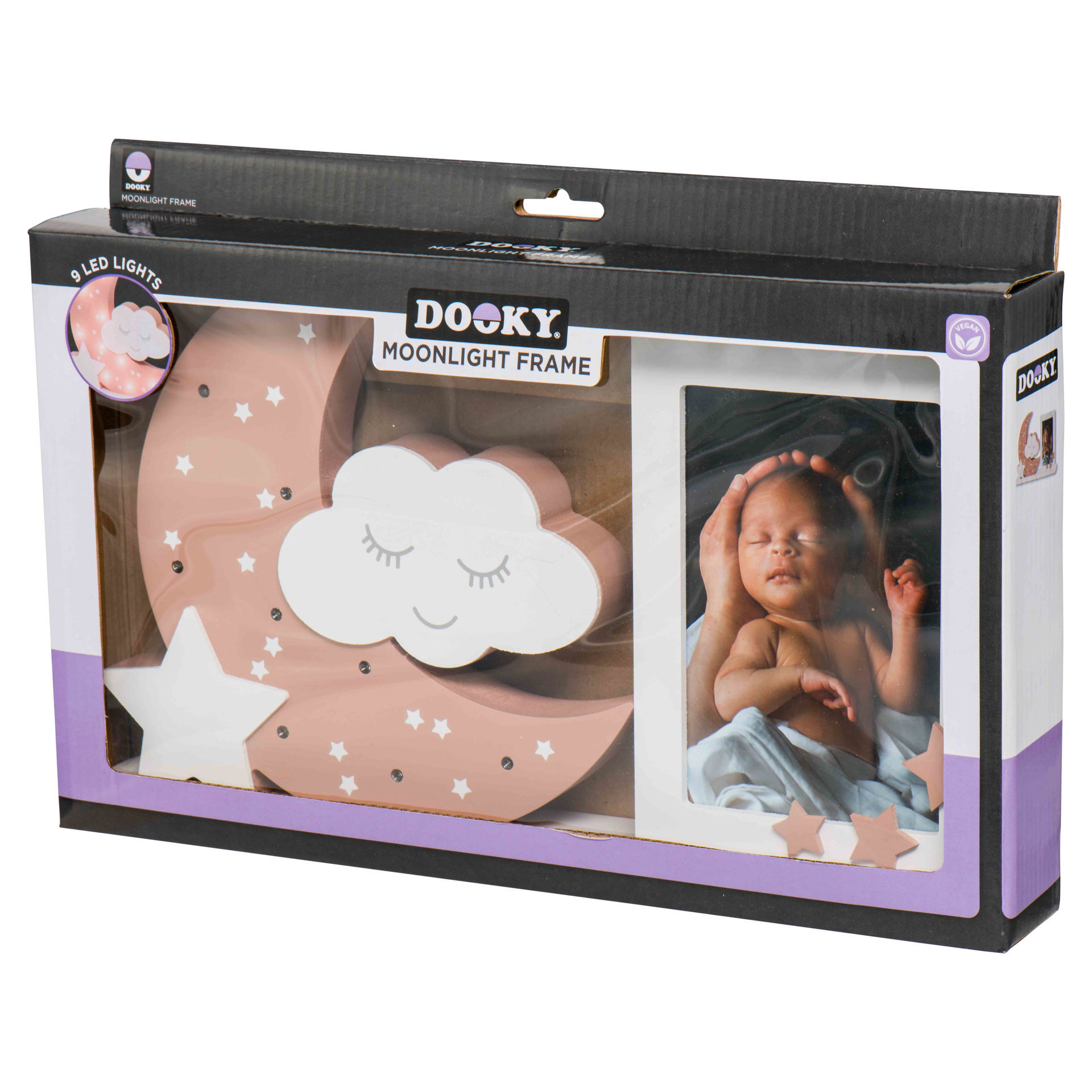 Moonlight frame photo frame Of course, you want to capture your child's precious moments, such as the birth, his or her first birthday or one of those beautiful smiles. You will want to see your most beautiful photos all the time, day and night, and this Moonlight frame, a beautiful photo frame with LED lights, will do the trick! Buying a photo frame. Which one will you choose? Taking a photo is easy and quick these days, everyone has a smartphone with a camera. The technology also ensures that the quality of the photos continues to improve. Moonlight frame photo frame is specially designed to give your most precious photos more attention. This photo frame consists of a moon, a sweet little cloud with a face and a little star. Photo frame with lighting The photo frame holds pictures of 10 x 15 cm. The special thing about this photo frame is that the moon contains 9 small LED lights, so that the stars really shine around your child. Thus, with this Moonlight frame photo frame, you have a kind of lamp that spreads a fairy light in the baby's room or living room. Moonlight frame as maternity present The Moonlight frame photo frame is made of MDF wood and comes in a nice gift box. So it is also a great maternity gift to give or receive! Which colour photo frame appeals most to you? Misty Olive, Pure Hazel or Warm Grey? General information Dimensions: 37 cm wide, 21 cm high and 4.5 cm deep. Requires 2 AA batteries (not included)