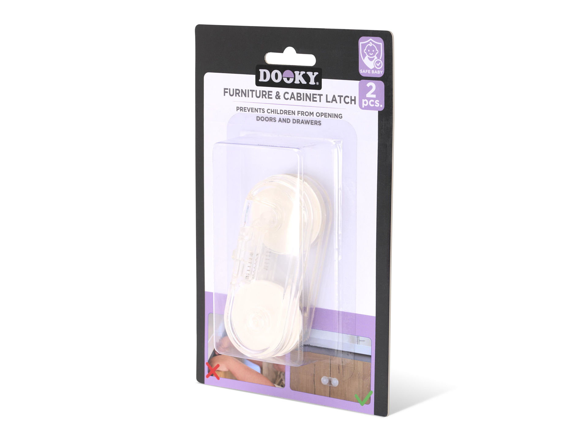 Glass cabinets and dressers can be fascinating for children, but also dangerous. The Dooky Furniture & Glass Cabinet Lock prevents doors from swinging open unexpectedly. This smart safety lock is specially designed for furniture with glass or lightweight doors, keeping dishes, books, and fragile items safely stored and your child out of harm’s way. The transparent design blends seamlessly with modern furniture. You simply attach the lock to the inside of the cabinet door, making it invisible from the outside. Its sturdy construction keeps doors securely closed. Adults can easily press and open the lock, but for children, it stays firmly shut no matter how hard they pull. Each pack contains two locks, allowing you to secure multiple cabinets at once. Perfect for display cases, China cabinets, or wall units. The subtle design preserves the look of your interior, while the adhesive mounting system keeps your furniture intact no drilling or screws required. Safety without compromise. The locks are easy to remove and leave no sticky residue behind, making them ideal even for temporary situations like a visit to grandparents. A flexible solution that’s just as safe as a permanent one perfect for parents who want both style and safety. Dooky has you covered. • Set of 2 safety locks • Transparent design complements any interior • Can be used on straight surfaces • Easy to open for adults • Attaches with a strong, removable adhesive strip • Product Dimensions 10x4x1.5 cm.