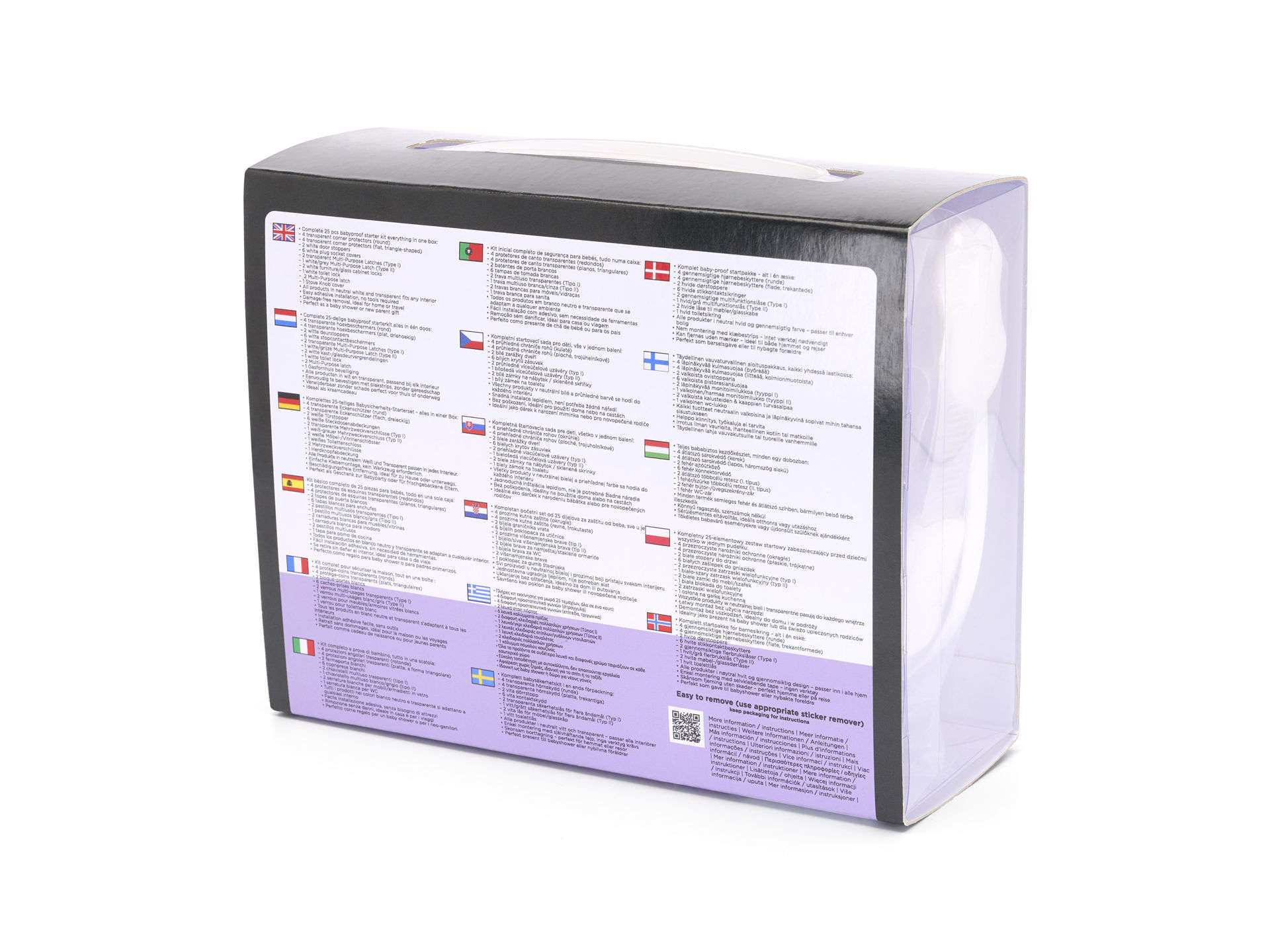 Once you start babyproofing, you’ll quickly realize it takes more than you thought. The Dooky Safety Kit is your ready-to-go starter set for a safe and child-friendly home. This 24 pcs all-in-one box gives you everything you need in one go: corner protectors, cabinet and drawer locks, door stoppers, socket covers, and even a toilet lock. Perfect for parents who want to secure their home quickly, effectively and stylishly. No hassle, just stick and protect. What makes this set unique is its thoughtful composition. You’ll get 4 round transparent corner protectors, 4 extra-flat triangle-shaped protectors, 2 white door stoppers, and 6 white plug socket covers. The kit also includes 2 transparent Multi-Purpose Latches (Type I), 1 white/grey Multi-Purpose Latch (Type II), 2 white Furniture & Glass Cabinet Latches, and 1 white toilet lock. Every item is carefully selected for places where little fingers like to explore. With one kit, you can babyproof your kitchen, bathroom, living room and even the toilet. All products come in neutral tones like white and transparent, so your interior stays calm and stylish. Installation is super easy: adhesive strips are included, and you won’t need any tools. The materials are high-quality, durable and meet the strictest safety standards. Want to remove them later? No problem they won’t leave behind sticky residue or damage, making them perfect for rental homes or stays with family. This kit also makes a wonderfully practical gift for new parents. Instead of hunting for individual items, you get a complete babyproof solution in one box. It helps prevent accidents before they happen and gives your child the freedom to explore in a safe space. No decision stress, no worries just a smart step forward. That’s exactly what Dooky stands for. • Complete 25 pcs babyproof starter kit everything in one box: – 4 transparent corner protectors (round) – 4 transparent corner protectors (flat, triangle-shaped) – 2 white door stoppers – 6 white plug socket covers – 2 transparent Multi-Purpose Latches (Type I) – 1 white/grey Multi-Purpose Latch (Type II) – 2 white furniture/glass cabinet locks – 1 white toilet lock - 2 Multi-Purpose latch - 1 Stove Knob cover • All products in neutral white and transparent fits any interior • Easy adhesive installation, no tools required • Damage-free removal, ideal for home or travel • Perfect as a baby shower or new parent gift