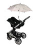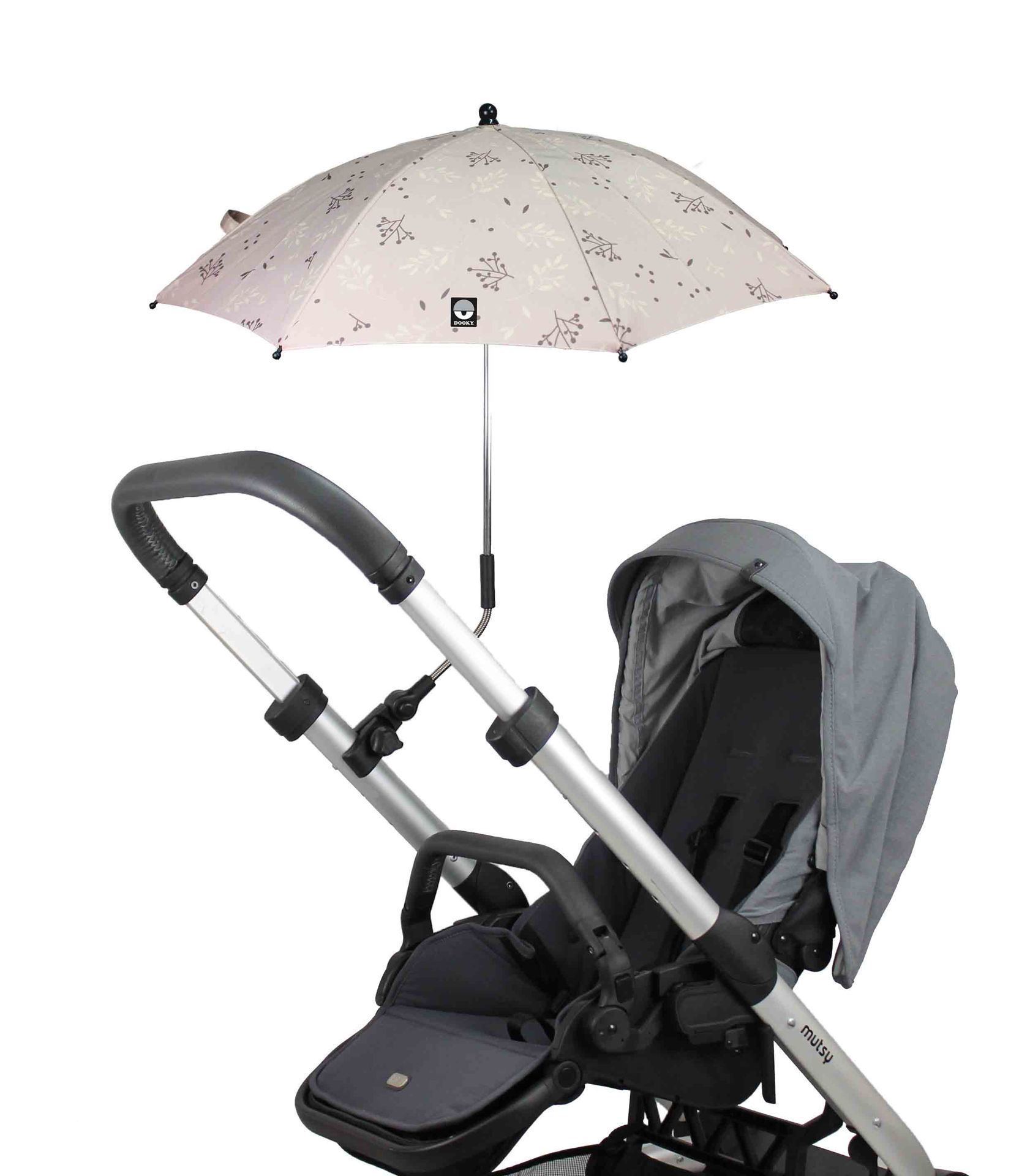 DOOKY Stroller Parasol Umbrella To protect your child against the bright rays of the sun, Dooky has developed a unique parasol to be attached on the stroller or buggy. This parasol protects your child against sunlight, is flexible in all directions and very practical to use! Benefits of the Dooky Stroller Parasol Umbrella When you go out in summer with your little one, it is important to protect their delicate skin. In addition to using sunscreen, it is wise to place a sunshade on the stroller or buggy. But one that protects against the sun's harmful rays. The Dooky Stroller Parasol has a canopy with UPF 50+ protection and is nicely large with its 76 cm diameter. Very safe! The Dooky Stroller Parasol can be rotated in all directions Using the Dooky Stroller Parasol ensures that fresh air can always enter the carry cot and reach your child. In whichever direction you drive and however the sun shines: the arm of the Dooky Stroller Parasol can be rotated 180 degrees. Moreover, the 'flex technology' allows you to bend the arm of the sunshade at both the top and the bottom. This way, you create an optimal shaded area in the carrycot of the pram or in the toddler seat of the buggy. How to attach the Dooky Parasol to the stroller? The Dooky Parasol is smart and universal because it fits on the handle of all brands of strollers and buggies. On round and square pipes. The parasol is easily attached to the push bar with the 'easyfix system'. Is there a breeze? No problem, because the arm and the ribs of the parasol are made of high quality aluminium, so extra strong and windproof. Clean and store quickly and easily The parasol is made of water-repellent 100% polyester. If the parasol gets dirty, you can easily clean the fabric with soapy water and a wet cloth. If you do not use the Dooky Stroller Parasol Umbrella, you can fold it up and store it in the supplied cover. The Dooky Stroller Parasol Umbrella is available in black, grey mélange, blue cherry, Beige Leaves and black leaves.
